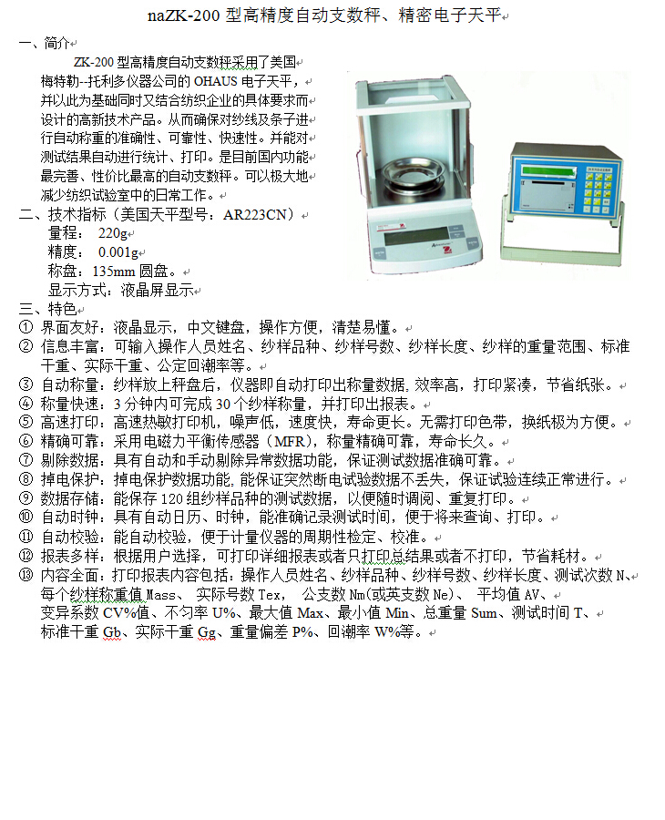 產(chǎn)品名稱: ZK-200型高精度自動(dòng)支數(shù)秤